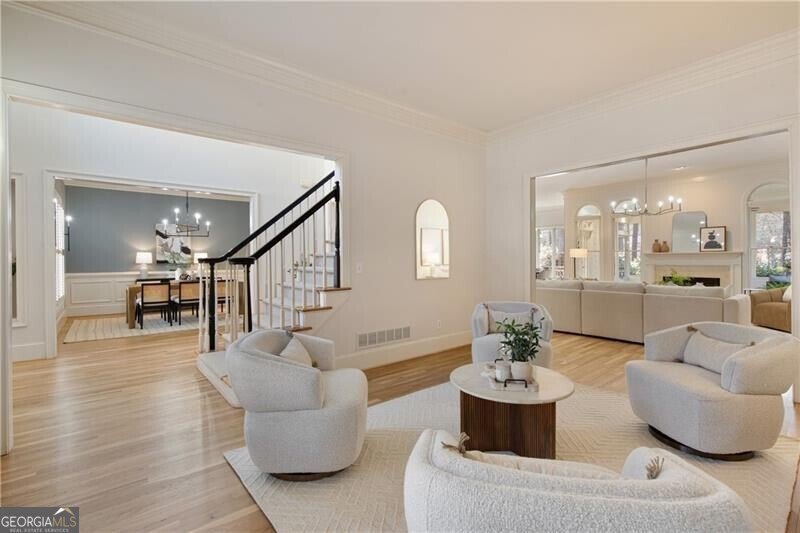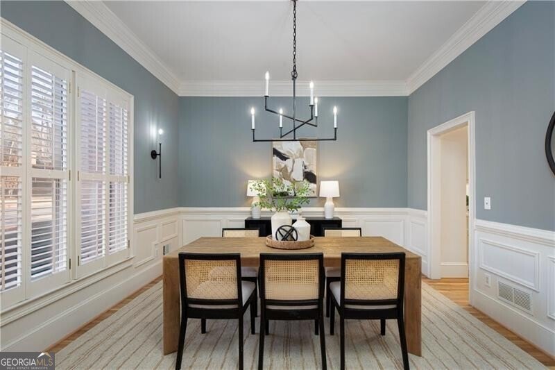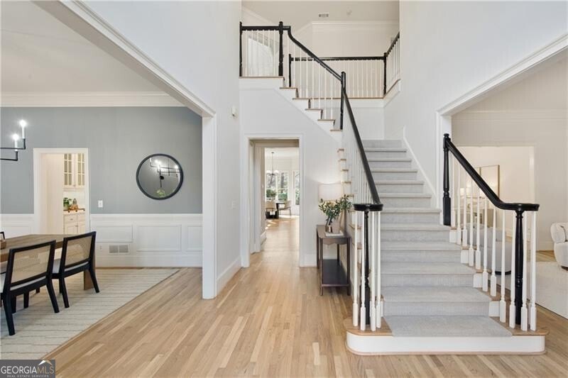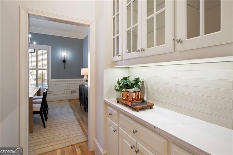 Quality craftsmanship, timeless style, and thoughtful renovations come together beautifully in this elegant, 4-bedroom, 3.5 bath brick traditional with a 3-car garage located in the highly desirable Admiral Ridge section of Windward. With recent updates that include a newly painted interior, modern lighting and newly refinished white oak hardwood floors, this home offers the perfect balance of classic elegance and modern comfort. A dramatic two-story foyer with a grand staircase creates an impressive first impression. Flanking the entry, a banquet-sized dining room with beautiful millwork and wainscoting sets the stage for memorable gatherings, while a private office or sitting room provides flexibility for work or a quiet retreat. The spacious fireside living room, highlighted by a wall of windows overlooking the screened porch and backyard, flows seamlessly into the heart of the home-an updated chef’s kitchen featuring white cabinetry, new quartz countertops, subway tile backsplash, Dacor stainless steel appliances, and an expansive custom island plus a butler’s pantry for easy entertaining. The light-filled breakfast room opens directly to the deck and oversized screened porch, allowing effortless indoor-outdoor living. Completing the main level is a newly renovated powder room and a “friends entrance” which leads into a bright laundry/mudroom complete with cabinetry, soaking sink, and a folding counter-designed for everyday ease. Upstairs, new carpet and fresh paint continue throughout. The serene primary suite is a true retreat, featuring a vaulted ceiling, cozy fireside sitting area, dual walk-in closets, and a versatile flex room ideal for an office, workout space, or seasonal storage. The fully renovated, spa-inspired primary bath boasts dual vanities, a soaking tub, and an oversized shower. Three additional spacious bedrooms-one with an en-suite bath and two connected by a Jack & Jill bath with separate vanity areas-offer comfort and privacy for family or guests. The daylight terrace level provides endless potential with a finished hobby room/office, walkout access to the backyard, and abundant unfinished storage. A third-car garage with a new garage door opens to a flat lower driveway-ideal for a future in-law suite, workshop, or hobby space. French doors lead to a covered courtyard area and provide a private entrance. Outdoors, enjoy a fully fenced, park-like backyard complete with landscape lighting, a tranquil pond, pergola, fountain, garden paths, and a level grassy play area. An expansive deck and screened porch further enhance your outdoor living options. Recent system updates-including Newer HVAC systems (2025 & 2021) and water heater (2025)-along with foundation waterproofing and wildlife exclusion provide peace of mind. Windward spans 3,000 acres surrounding a 195-acre private lake. Enjoy top-rated schools and convenient access to GA-400, Avalon, Halcyon, and Downtown Alpharetta’s shops and dining. Residents love the vibrant lifestyle-boating, fishing, paddleboarding, playgrounds, pocket parks, and an active social calendar. Membership at Raquet Social Club at Windward Lake offers resort-style amenities including pools, splash park, tennis, pickleball, padel and the private Golf Club of Georgia offers two award-winning courses and a recently renovated clubhouse with multiple restaurants. Experience the best of Windward living!