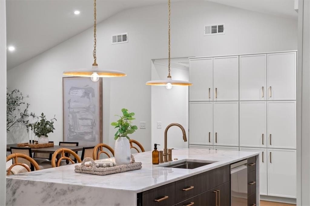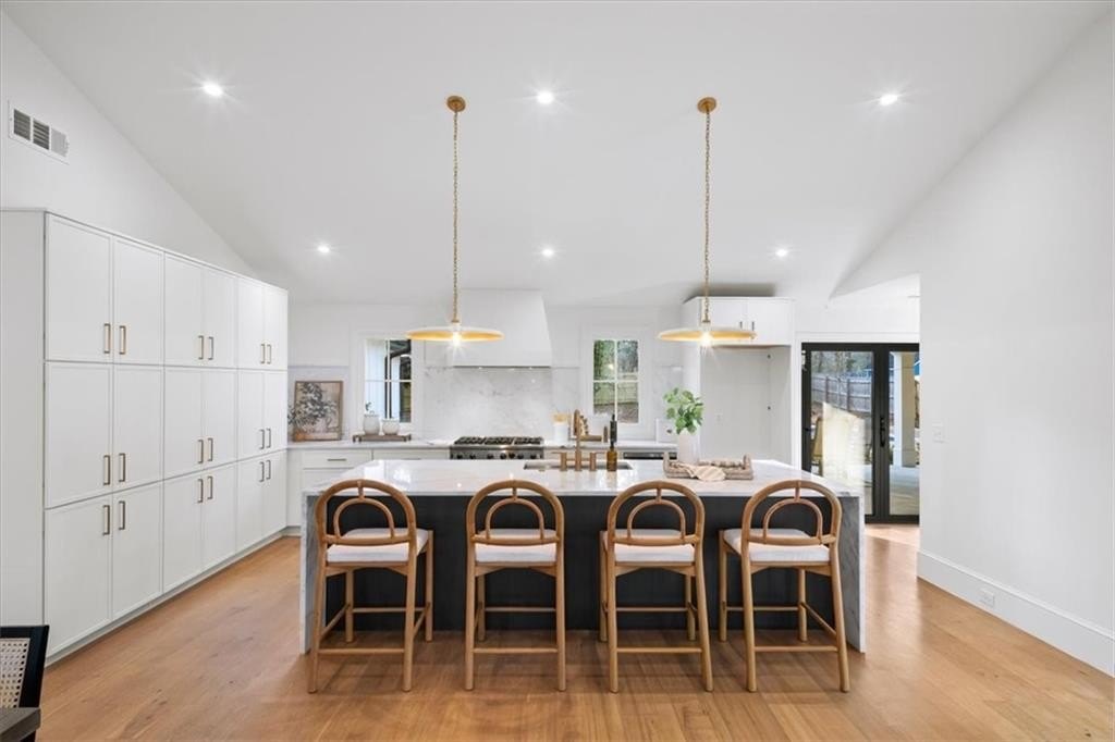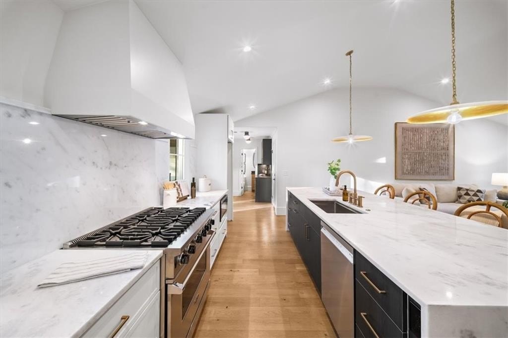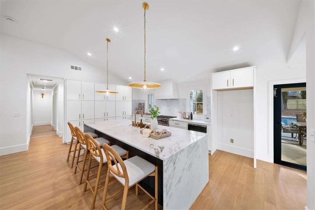 You will love this fully reimagined luxury retreat, where every element has been rebuilt, reframed, and thoughtfully curated to create a truly one-of-a-kind living experience. Taken down to the studs and rebuilt with an expanded footprint, this home features a newly added primary suite wing, designer-selected finishes by Stevie Interiors, and an incredible backyard centered around a custom pool and covered entertaining space. A newly constructed front entry and professionally designed landscaping create striking curb appeal, complemented by a new driveway, paver walkways, and covered front porch and rear patio. Quartzite and marble surfaces carry throughout the home, paired with white oak hardwood floors, Visual Comfort lighting, and high-end plumbing fixtures. The open-concept floor plan is anchored by a chef’s kitchen featuring marble countertops with a dramatic waterfall edge, custom cabinetry, a Viking 36″ range, Bosch dishwasher, and a stylish bar area positioned between the kitchen and the backyard for seamless entertaining. The new primary suite is a private haven with direct pool access, and a spa-inspired bath complete with freestanding soaking tub, marble tile, and dual vanities with designer lighting. Secondary bedrooms and bathrooms carry through the same high-end designer finishes for a cohesive, elevated feel. Step outside to experience the show-stopping backyard, where a new PebbleTec pool with marble coping anchors the resort-style setting. The entertaining area includes covered gathering space, an outdoor shower, new fencing with gates, and professionally designed landscaping. Virtually every system is new, including spray foam insulation throughout, all-new plumbing and electrical, new HVAC systems, new water heater, new windows and doors, and an upgraded side-mount garage door opener with a new garage door. The roof system has been fully replaced, with select metal roof accents for added architectural interest. This home offers the rare opportunity to enjoy the feel of new construction in a prime Alpharetta location with top schools, minutes from Avalon and Downtown Alpharetta’s markets and dining. Schedule your private tour today and experience the craftsmanship and design of this exceptional property.