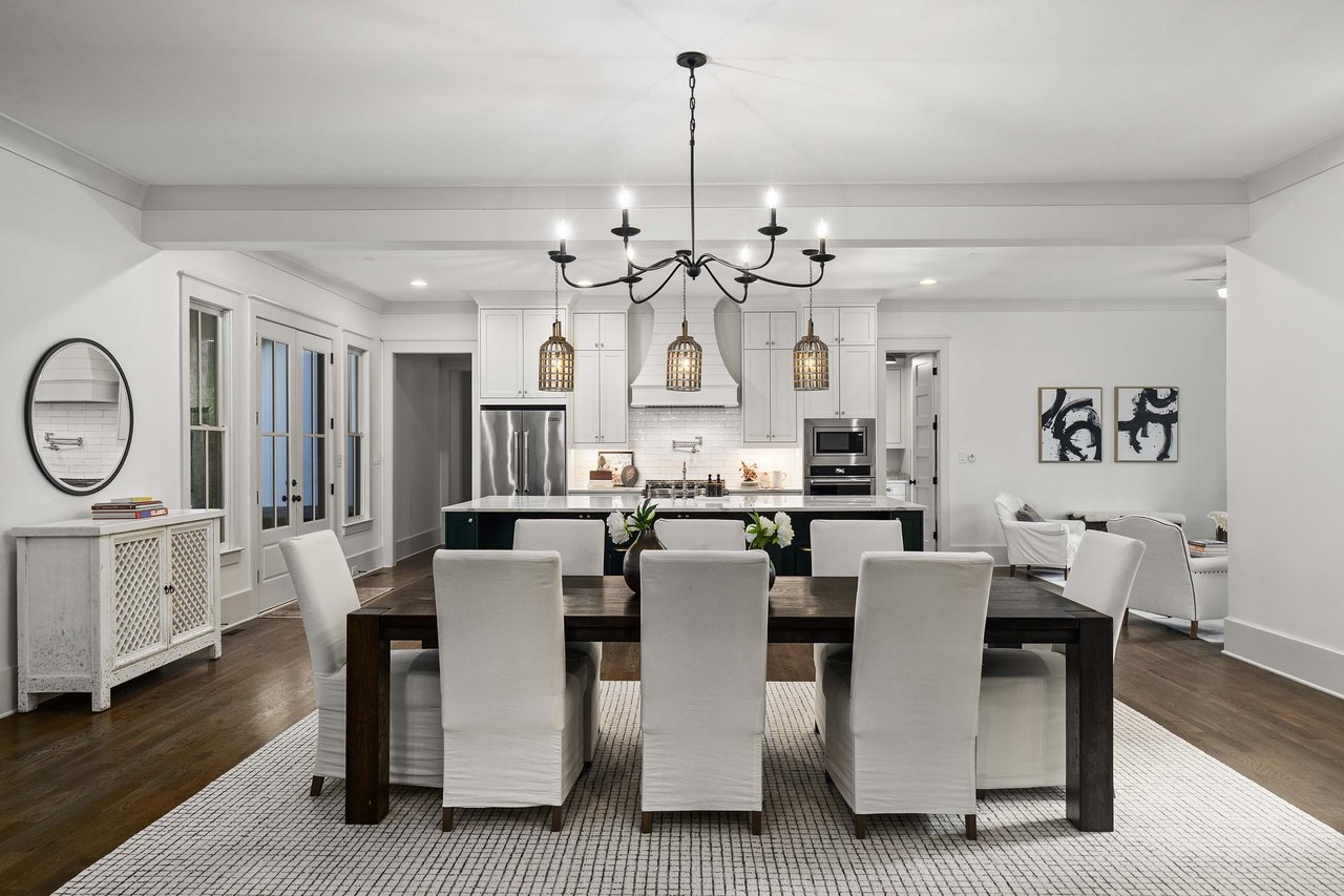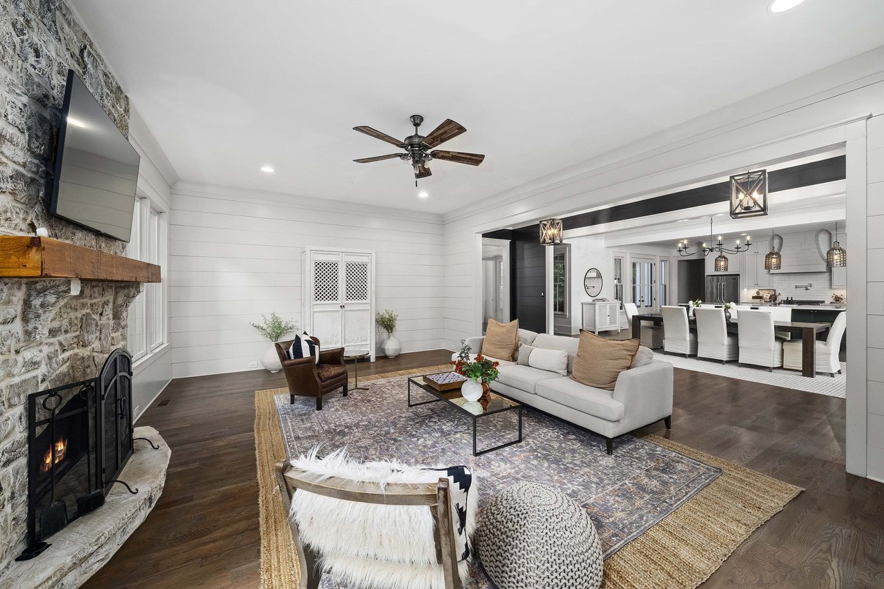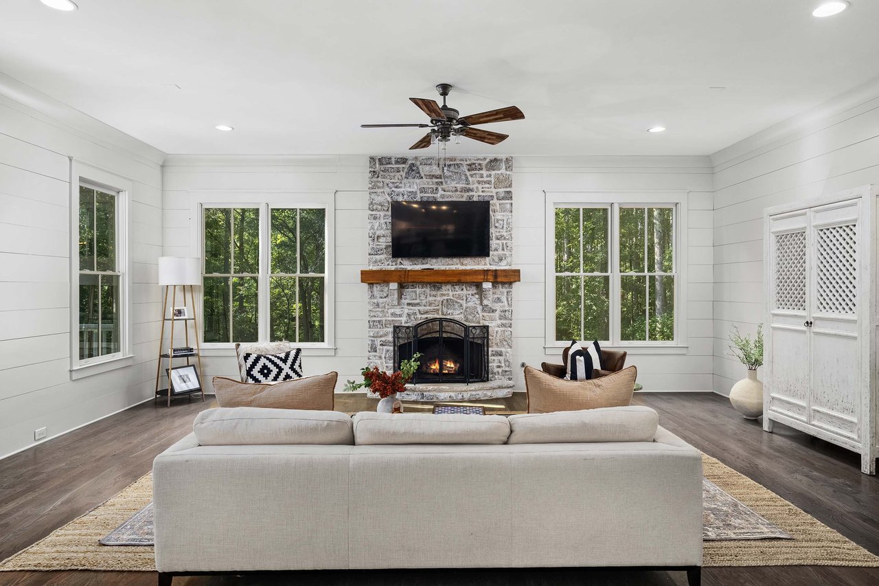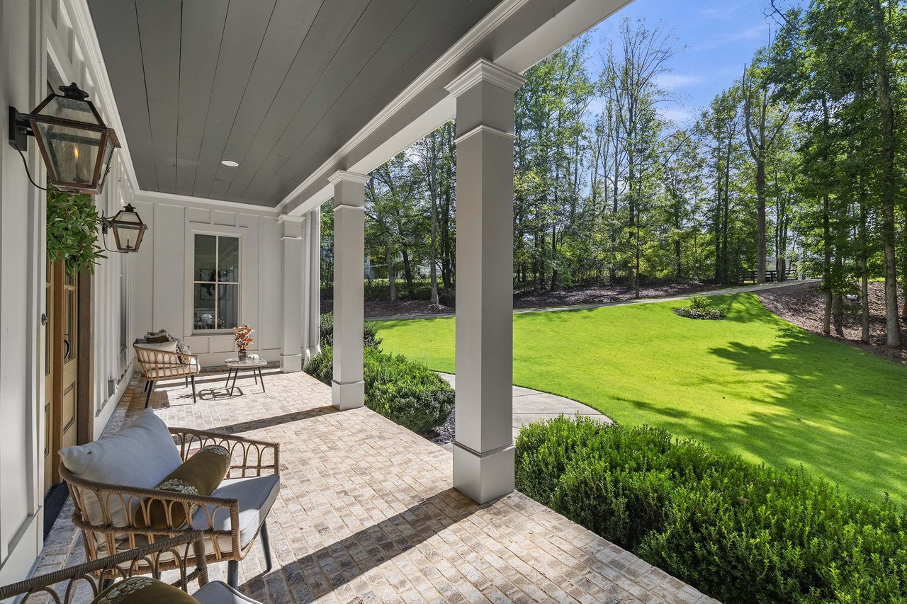 Tucked away on a private cul-de-sac in Long Shadows, one of Alpharettas most picturesque equestrian enclaves, this modern farmhouse blends timeless architecture with modern comfort on 1.85 acres. A covered front porch with a metal roof and board-and-batten siding welcomes guests inside, where double doors open to an airy floor plan filled with natural light and thoughtful design. The main level offers effortless living and entertaining. A fireside living room accented by a shiplap wall flows seamlessly off the foyer, as does the inviting dining room. The dark hardwood floors continue from the dining room into the chefs kitchen, which is appointed with double-stacked custom cabinetry, stainless steel appliances and an oversized island with seating. A walk-in pantry with built-in cabinetry and additional counterspace provides abundant storage, while a cozy sitting area just beyond the kitchen creates the perfect space for casual gatherings. Double French doors lead to a covered brick porch, ideal for grilling, dining al fresco or relaxing with views of the fenced backyard. The primary suite is a private retreat with cathedral ceilings, abundant natural light and barn doors that reveal a spa-inspired bathroom. Here, marble-topped vanities, a clawfoot bathtub crowned by a crystal chandelier and a Carrara marble shower with a bench, product niche and a seamless glass door set a serene tone. An office and a convenient main-level laundry complete this floor. The hardwood floors continue upstairs throughout a large landingperfect for homework or movie nights. Three spacious bedrooms, each with an en suite bathroom, are joined by a generous playroom and a second laundry room with cabinetry, a sink and hanging space. The finished terrace level extends the homes versatility with a very spacious recreation room, two additional bedrooms, a full bathroom and a gym. Outdoor living is just as inviting, with a covered back porch featuring a dining area, television hookup, grilling area and a pavered patio with a hot tub overlooking the grassy play yard. The three-car garage and 1.85-acre lot offer both practicality and privacy. Adding to the unique lifestyle of Long Shadows, Dreamland Farm at the end of the street offers horseback riding lessons and boarding, further enhancing the community’s equestrian charm and appeal. Located in Cherokee County with an Alpharetta address, this exceptional property enjoys the advantage of lower Cherokee taxes while being zoned to top-rated Avery Elementary and Creekview High Schools. This is a rare opportunity to enjoy refined farmhouse living with abundant space, enduring style and a coveted location close to downtown Canton, Woodstock, Roswell, Alpharetta, Crabapple Market and Avalon.
