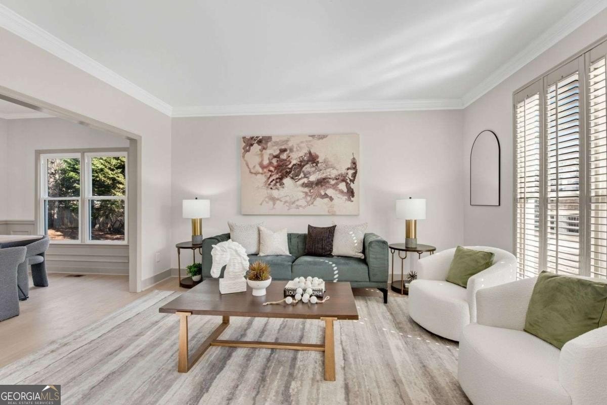 Welcome home to this stunning blend of luxurious living & beautiful, remodeled craftsman style home located on a cul-de-sac in established neighborhood only a mile from Downtown Alpharetta in Alpharetta Elementary, Hopewell Middle, & Cambridge High School district with a 2 car garage, extra-large primary suite w/ dual closets, finished main level sunroom, large upper bonus room, and a low maintenance fenced-in backyard! This entertainer’s home had an entire permitted REVAMP including new siding, cladding, exterior paint, new garage door, motor & epoxy floors, new windows, new electrical & plumbing, & new HVAC! Open the front door to be greeted by a two-story foyer w/ a view of the new stair railings, all new engineered light hardwood flooring throughout, & upgraded stair carpet! To the left is an executive home office featuring built-in shelving & French doors. A bright formal living room to your right serves as another place to gather and opens into the dining room with new light fixture, more windows, & wainscoting. Dining room flows seamlessly into the new designer kitchen featuring all new cabinets, custom quartz countertops, tiled backsplash, new sink, sleek stainless-steel appliances including built-in vent hood & refrigerator. Fabulous coffee/wine bar has a wine cooler & floating shelves. Kitchen island has overhang for bar seating, additional storage, & houses the new microwave. Cozy breakfast area is situated in between the kitchen & the gorgeous family room with remodeled fireplace so entertaining is effortless. Additional finished sunroom is a fantastic large bonus space with two cased entrances, exposed beams, tongue & groove ceiling, new fans, & has a backyard entrance to the new firepit paver patio & new retaining wall! Also located on main is a convenient half bath powder room, laundry/mudroom with a sink, & garage entry! Head upstairs to discover the massive primary bedroom suite that features vaulted ceiling w/ wooden beams, custom chandelier, new carpet, & wooden blinds. Resort like primary bathroom has tiled floors & showcases a large frameless glass shower, luxurious soaking tub, TWO walk-in custom built closets, & a designer double vanity all elevated with gold hardware, lighting, and mirrors. Upper floor has a front facing bedroom, a backyard facing bedroom, and a super spacious bonus/bedroom with ensuite designer full bathroom featuring new double vanity, tiled floors, tiled shower & bathtub combo, and all with matching gold hardware, lighting, & mirrors. All upper bedrooms have hallway access to the bathroom. This home is complete with fresh interior paint from top to bottom, all new interior doors w/ matching doorknobs & hinges, all new toilets, new flooring throughout, & all new lighting package. This unbeatable location has endless fun things to do, like shopping & dining in nearby Downtown Alpharetta, The Avalon, and a large outdoor concert venue Ameris Bank Amphitheatre, seasonal farmers market shopping, Alpha Loop & Green Spaces for trails and parks great for walking, running, biking. Local Events & Music Nights on Main Street. Wills Park for wide open space with sports fields, dog park, trails & Webb Bridge Park for quiet nature areas perfect for short hikes & picnics. Don’t miss your opportunity to own this beautiful home.