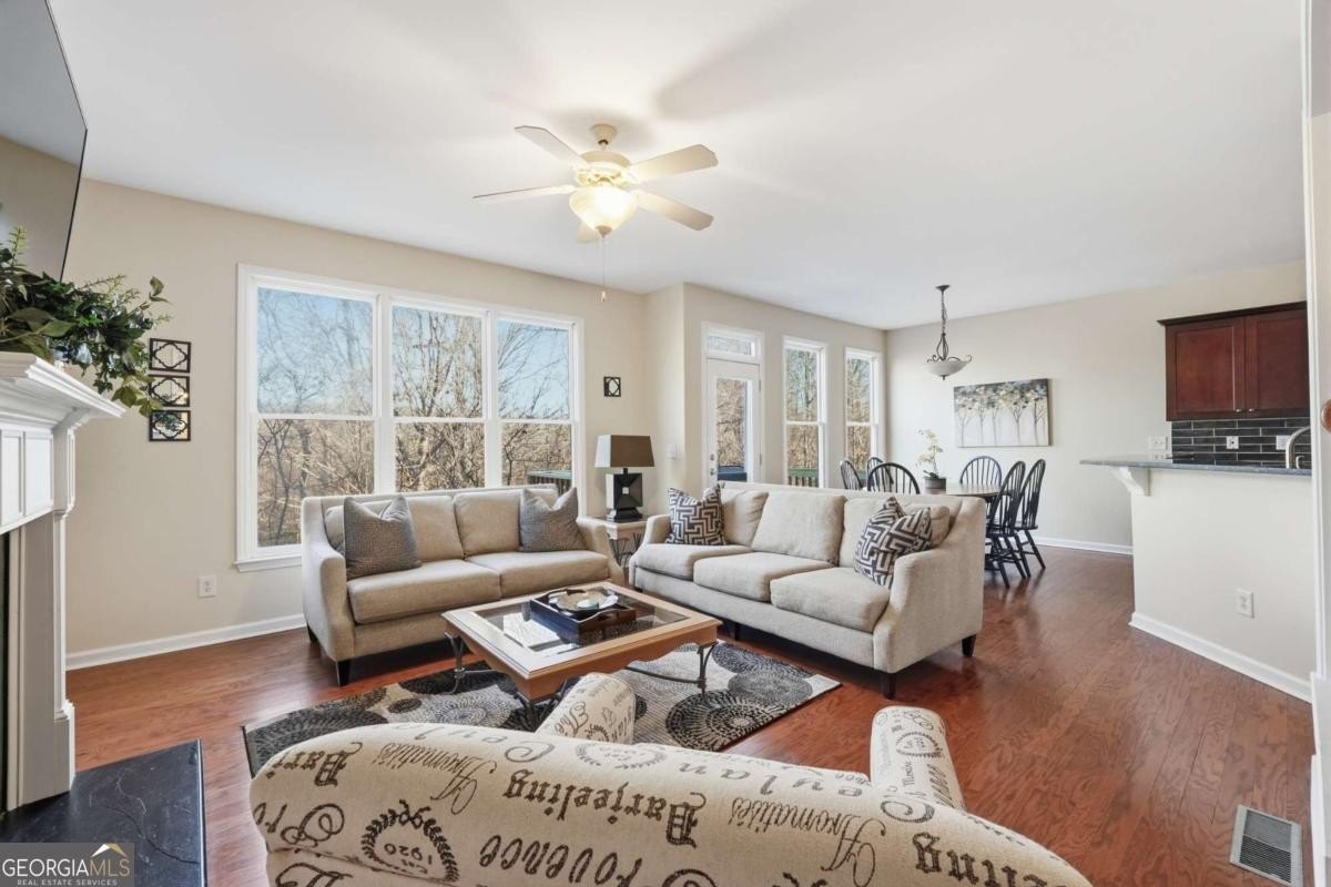Hurry! Rare basement lot now available. Highly sought-after community just one mile from the Suwanee Creek Greenway and only three miles from Suwanee Town Center. You’ll love the easy access to major roadways along with nearby restaurants, grocery stores, shopping, and top schools – everything you need is close by. Inside, recent updates include fresh exterior paint and brand-new carpet, complemented by hardwood floors throughout the main level. The spacious eat-in kitchen features a separate dining area, breakfast bar, gas range, subway tile backsplash, and stone countertops. The fireside family room is filled with natural light and includes built-in shelving, creating a warm and inviting space. Step out onto the grilling deck and enjoy the peaceful wooded lot overlooking a creek. Upstairs, the primary suite features a tray ceiling and a well-appointed en suite bath with dual vanities, tile flooring, tile shower surround, and a large walk-in closet. A secondary bedroom includes its own en suite bath, while two additional bedrooms share a Jack-and-Jill bath, each with a private vanity. All bathrooms feature tile flooring. The unfinished basement provides excellent storage and potential for future expansion.
