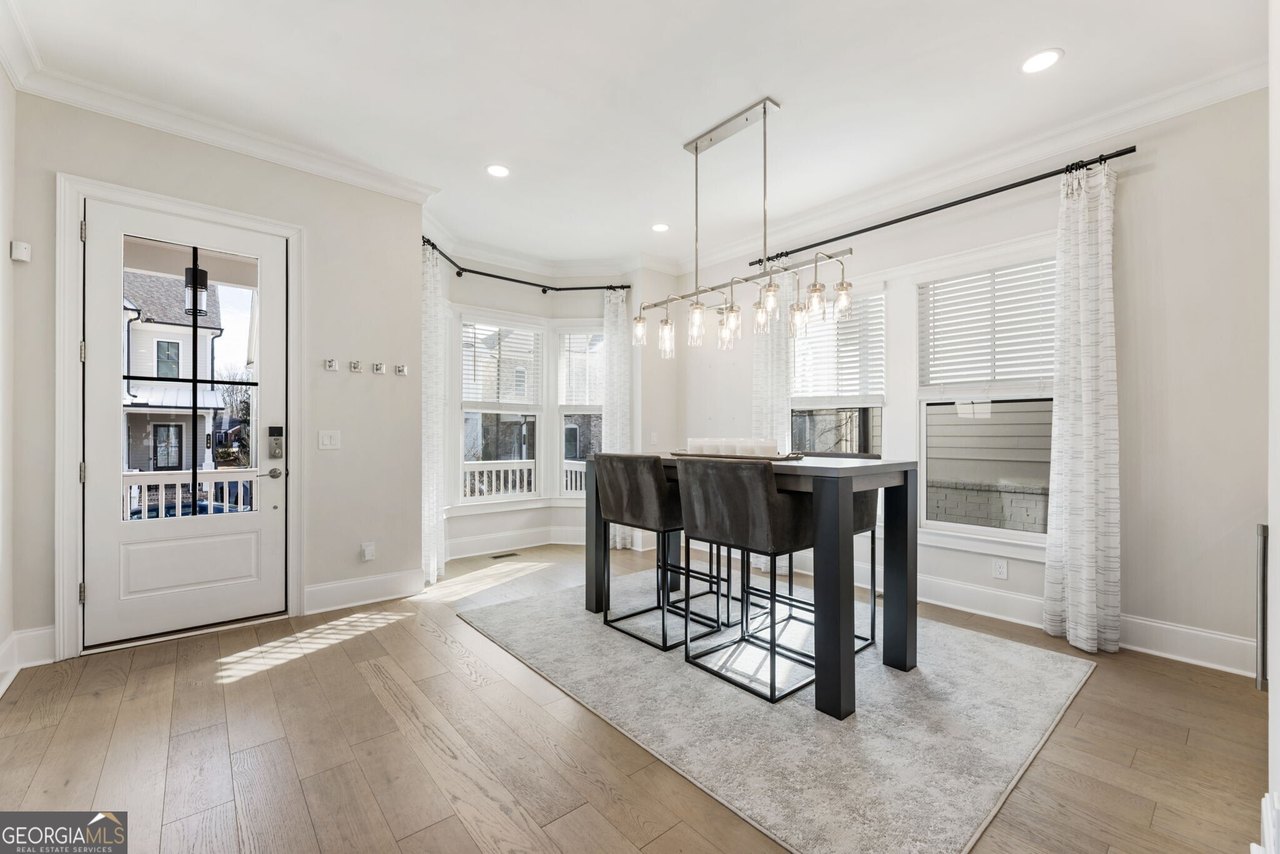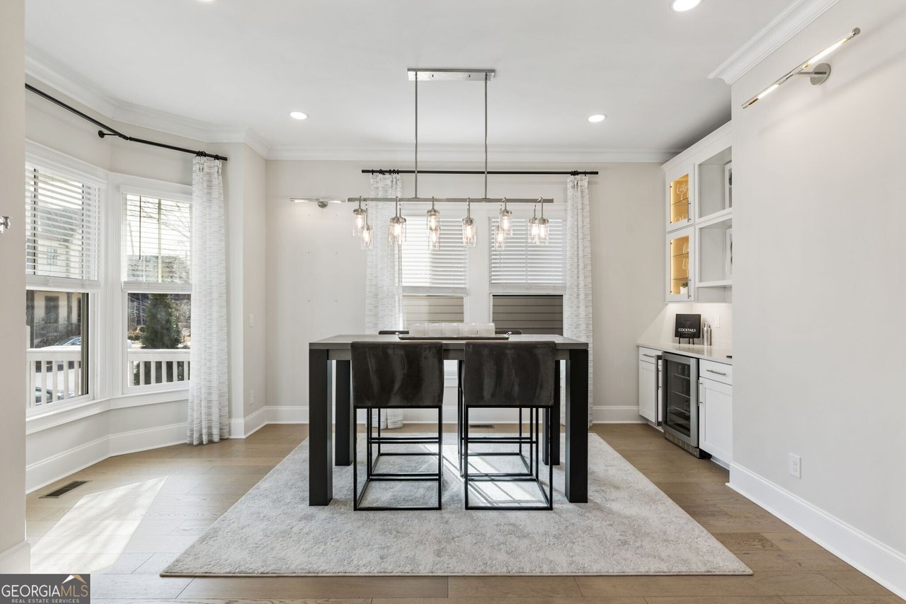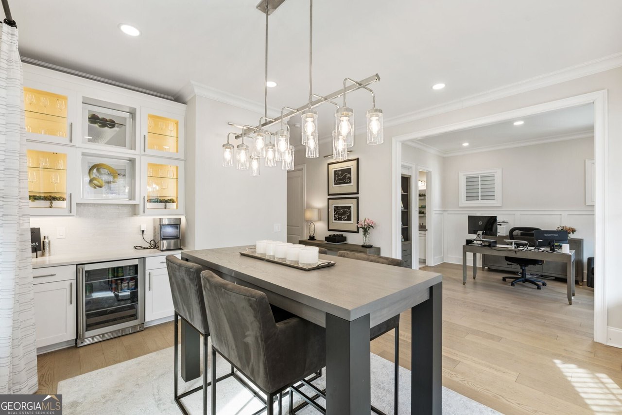 Centered around Downtown Alpharetta, where mornings begin with coffee strolls and evenings end under caf lights, Manning on the Square offers a rare opportunity to live fully immersed in one of North Fulton’s most vibrant communities. Located just moments from Avalon and quick access to the Alpha Loop, this residence places dining, shopping, green space, and year round events right outside your door while still offering the comfort of a private retreat. Thoughtfully enhanced with over $100,000 in upgrades. Seven custom closet systems throughout the home provide exceptional organization and represent a significant upgrade rarely found in today’s properties. A private elevator services all levels, creating effortless everyday living. Upon entry, an open foyer welcomes you inside, where a private home office or fifth bedroom suite is positioned just off the entry and includes its own ensuite bath, ideal for guests or multigenerational living. The main level is anchored by a spacious kitchen that creates an exceptionally seamless entertaining experience. Outfitted with a Sub Zero refrigerator, a 36 inch Wolf gas range, pot filler, ceramic apron front sink, and an oversized quartz island with seating and built in bookcases, the kitchen offers both functionality and refined design. Generous countertops, premium appliances, and abundant storage create a natural gathering space, while the adjacent living and dining areas provide a warm and inviting setting for everyday living and special occasions alike. Additional highlights include a large pantry, water purification system, designer LED lighting, and a custom built buffet with twelve solid wood soft close drawers. The second level features the spacious primary suite alongside two secondary bedroom suites, each with a private ensuite bath. The terrace level includes an additional bedroom with its own ensuite as well as a well appointed living space that offers flexibility for guests, recreation, or extended stays. Downtown Alpharetta continues to be one of Metro Atlanta’s most sought after destinations, known for award winning restaurants, boutique shopping, beautiful parks, and a strong sense of community. This residence offers a distinctive combination of luxury, thoughtful upgrades, low maintenance living, and an iconic downtown setting designed for the way you want to live today and in the years ahead.