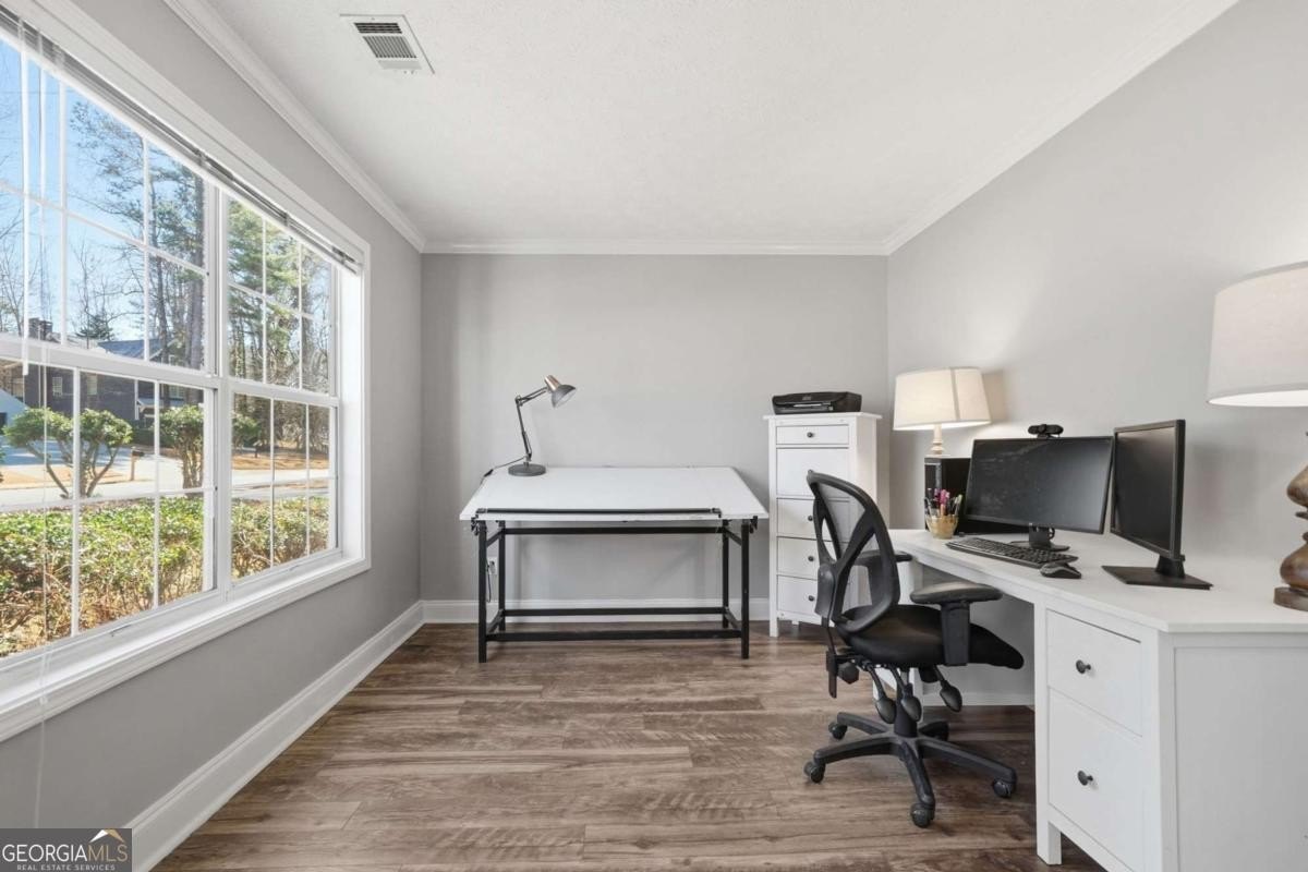 주요 특징으로는 펜스로 둘러진 뒷마당이 있어 프라이버시를 지켜줍니다 / I‑85 등 주요 도로 접근성이 좋아 통근이 편리합니다 / 코스트코 등 쇼핑/식당가 접근이 편리합니다 / 다운타운(상권) 접근성이 좋습니다 등이 언급됩니다.
