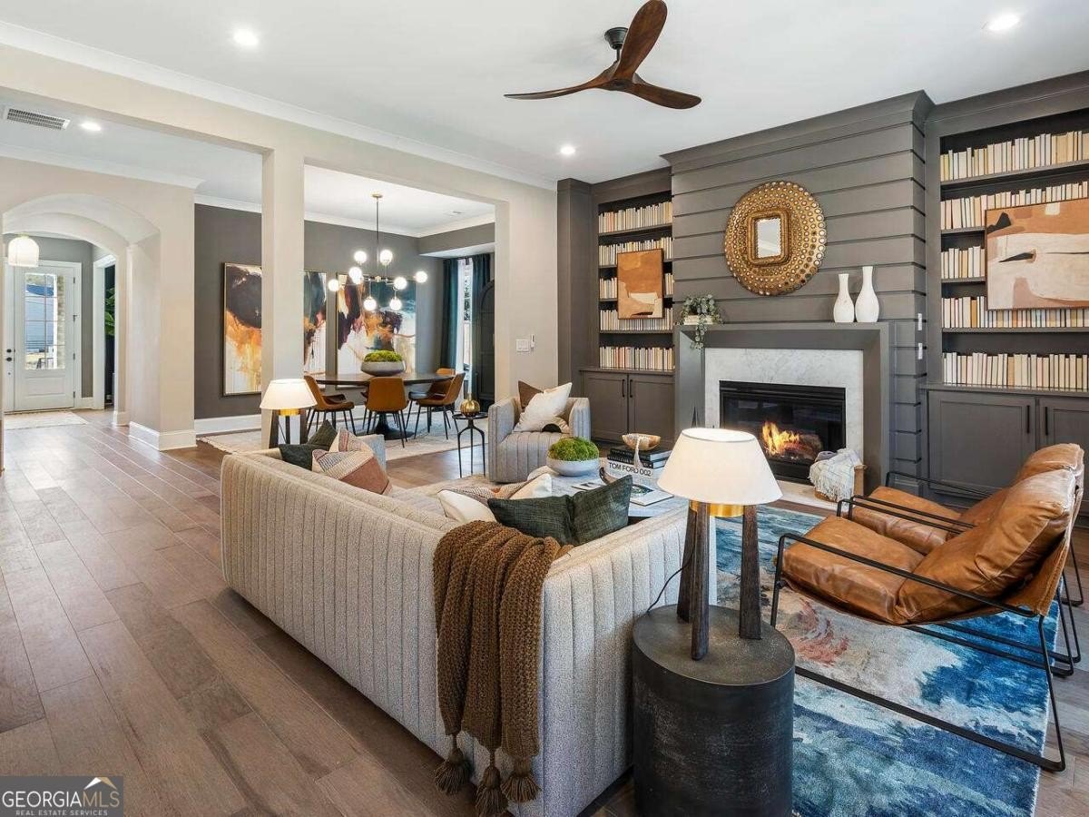 The Livingston – Estate Home – built by JW Collection founded by John Wieland! NOW PRE-SELLING WITH FOUNDER’S PRICING. HOME IS UNDER CONSTRUCTION. Welcome to Laurel View our newest Luxury, private, and gated living neighborhood carefully designed and crafted by JW Collection. Elevator (LIMITED FOUNDER’S INCENTIVE) & third car tandem garage included. This new plan is a stunning 4 story luxury, low maintenance with exquisite John Wieland features. Situated on a private wooded lot surrounded by trees with an undisturbed tree buffer. You will discover private sunsets and breathtaking views atop the 4th story walk out sky terrace. This home has wonderful living space for all your entertaining needs. The designer chef’s kitchen has beautiful cabinets that go all the way to the top of the 10′ ceilings and EVERY cabinet in this home is soft close! The oversized kitchen island is spacious and comes equipped with a double trash pullout, sink, and dishwasher. Included is an oversized beverage/entertaining area with included JennAir beverage refrigerator. You will also have a walk-in pantry along with a built-in cabinetry pantry for ample storage. Hardwoods are on the entire main level, owner’s suite, bonus areas, and all stairs. All interior doors are 8′ SOLID core doors. Also, included you will find a Luxurious JennAir appliance package that features a built-in refrigerator, 6 burner chef’s range with double ovens, and designer kitchen wood hood. In your spacious great room you will create many memories around your cozy fireplace with gas logs and built-in bookcases. Great room also leads to private outdoor covered living area with Trex decking for relaxing, grilling, and entertaining. The spacious owner’s suite is equipped with double walk-in closets, including built-in closet systems. In your owner’s bath you will find a spa experience with a free-standing soaking tub, large zero entry walk-in shower with bench, hand held spray system, shampoo niche, frameless door, and tile all the way to the ceiling. In fact, it does not matter which bath you see, they all have tile to the ceiling, undermount sinks, and quartz countertops. Enter from your oversized garage to a mud room with bench, cubbies, and hooks. Located in your oversized garage is additional storage space for all of your seasonal items. Also, one of the best features is that this home comes with your very own ELEVATOR!!! The upper level has a bedroom with an en-suite with walk in shower, and a bonus room that opens up to a private rooftop sky terrace that gives you amazing sunset views. The sky terrace is equipped with full sliding doors that opens the indoor space to the outdoor space. Last but not least, you will have a full finished terrace level, including bonus/media area, full bedroom with bath and walk in shower, as well as finished heated and cooled storage area. The terrace level also has a nice paver outdoor area that looks out to the private serene views. We are now accepting sales and this home is just starting construction and should be move in ready by Summer 2026. You will meet with the JWC design team to personalize the interior design for the finishes. At Laurel View, luxury isn’t an upgrade, it’s our standard. Every home is thoughtfully designed and crafted with exceptional included features that elevate everyday living. Laurel View is intended to provide its residents with easy access to all of the many dining, shopping, and entertainment options available in the ‘SoFo’ area. The neighborhood will also include an open-air pavilion as well as greenspace and gathering area with a firepit. Laurel View’s strategic location gives its residents prime access to the heart of South Forsyth’s growing commercial landscape. Laurel View is ideally situated amongst top-rated schools, offering families access to some of the best educational opportunities in the county. HOME IS NOT THE ACTUAL HOME BUT A RENDERING OF SIMILAR HOME BUILT BY THE JW COLLECTION.