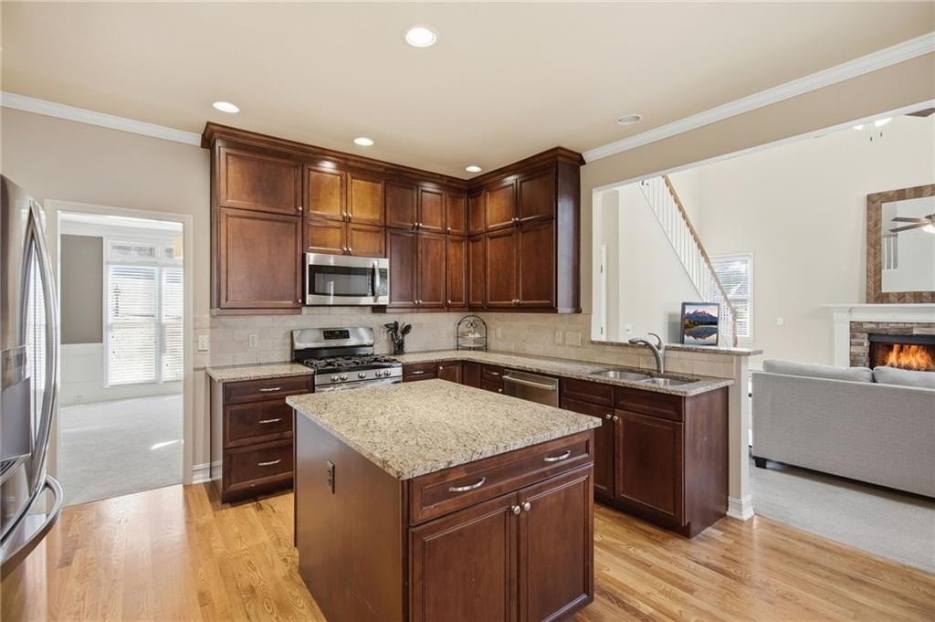 Tucked away at the back of a swim tennis community on a quiet street, this one owner home is zoned for Level Creek Elementary, consistently ranked among the top schools in the state and offering a dual language immersion program, and North Gwinnett High School. Lovingly maintained by its original owners, pride of ownership is evident throughout. The main level features a two story great room with the kitchen overlooking the space, creating a functional layout for everyday living and entertaining. The chef’s kitchen offers a custom island with storage space along with custom counter to ceiling cabinetry with exceptional storage and soft close drawers. The covered, screened in deck with additional grilling space is located just off the kitchen and overlooks an expansive fenced backyard, one of the largest in the community, well suited for pets, play, and gardening. Newly refinished hardwood floors, fresh interior paint, and new carpet contribute to the home’s move in ready condition. Upstairs, the primary suite includes a remodeled en suite bathroom with a frameless glass shower, along with three additional bedrooms and a hall bathroom. Peace of mind comes with a 2022 roof, heat shield attic insulation, leaf guard gutter system, and an electric vehicle charging station in the garage. The finished basement adds flexible space ideal for a fifth bedroom or office, a full bathroom, and a large living area well suited for movie nights and ping pong, along with an entertainment kitchen with wine rack, mini refrigerator, microwave, and bar sink, plus additional unfinished storage. Enjoy the Suwanee lifestyle with easy access to Town Center, Sims Lake Park, shopping, dining, and community events, while still offering a private setting within an established neighborhood.