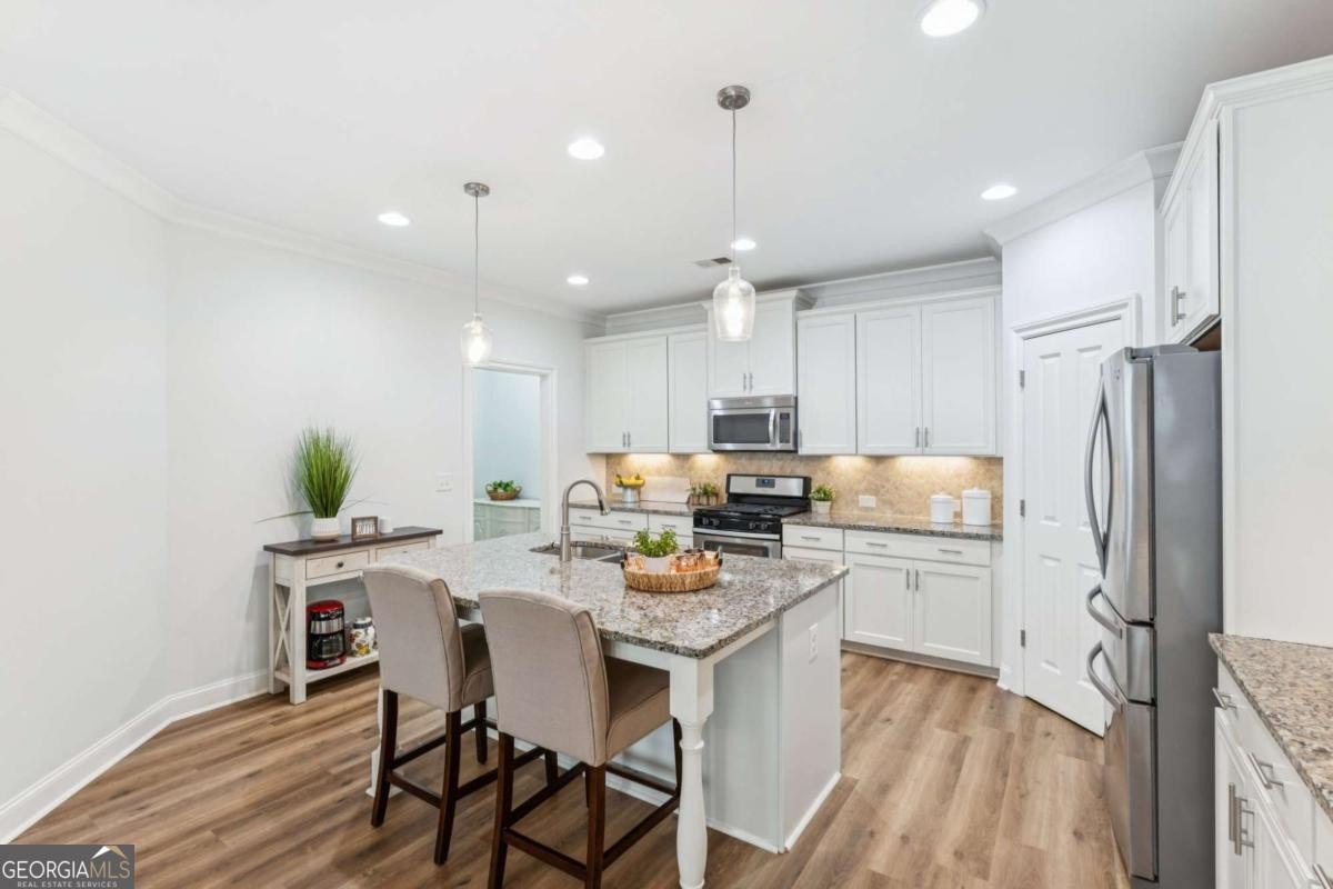 LOCATION and LUXURY LIVING AT ITS FINEST! This stunning, OPEN CONCEPT, MASTER ON MAIN with STORAGE GALORE, an OPTIONAL 4th BEDROOM and 47K in recent upgrades is located in the sought-after Jamestown subdivision, an active swim/tennis/pickleball community. This fantastic, gated community is located less than a mile from Halcyon, offering top local restaurants, shopping, live entertainment, cornhole leagues, easy access to the Big Creek Greenway walking and biking trails, and much more. As you step inside, you are welcomed by a BRIGHT and INVITING, open main level floor plan with numerous windows and an abundance of natural light. This floor plan features an inviting foyer, a large open dining room, and a family room that seamlessly connects to a gorgeous white kitchen with deluxe cabinetry, a large island, and makes it a fantastic space for entertaining. Enjoy the serene views out to the lovely landscaped custom patio with paving stones and lush aromatic shrubs, where you can unwind year-round. The main-level, generously sized primary bedroom boasts a luxurious bathroom with a separate tub and shower, along with a large walk-in closet to meet all your storage needs. Upstairs, you will find two additional spacious bedrooms that offer ample space for everyone. Additionally, there is an oversized LOFT area that serves perfectly as a home office and an OVERSIZED flexible bonus room which can be used for additional living space, MEDIA ROOM, 4th BEDROOM, gym, playroom – get as creative as you wish! Fresh paint and LVP throughout, gorgeous fenced and landscaped patio, and remodeled kitchen are just a few of the recent upgrades to this house. There’s nothing left to do but move in and start enjoying the vibrant and active community of Jamestown. Get in now before property values soar. With easy access to GA 400 and top-rated schools, this property is a perfect 10! SCHEDULE YOUR SHOWING TODAY!