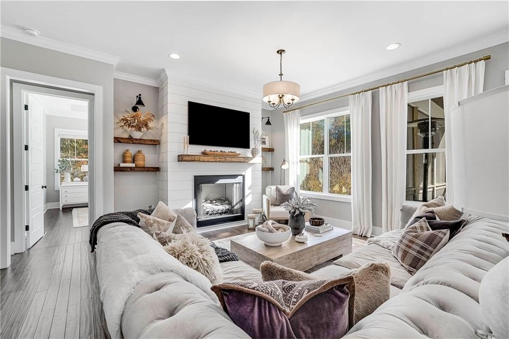 Wow! Experience refined Southern living in this exceptional Craftsman farmhouse on three lush acres in Johns Creek, offering the peaceful feel of the countryside right in the middle of North Atlanta! This beautiful 2018 custom-built 5 bed, 4.5 bath, primary-on-main, 3-car garage home features an inviting traditional farmhouse front porch, gleaming hardwoods throughout, high ceilings, and more! The main living level includes a formal dining room, cozy fireside family room, fabulous vaulted, covered screened porch with stone fireplace, and the updated heart-of-the-home, eat-in kitchen complete with island, stainless appliances, beverage cooler, walk-in pantry and adjacent breakfast area, all overlooking the private pastoral landscape of the backyard! The main level also includes the spacious primary suite with trey ceiling detail, dual closets, and large updated ensuite bath with separate vanities, walk-in shower, and clawfoot soaking tub! Upstairs, you’ll find 3 sizable guest bedrooms, bonus room, one ensuite bath, and a Jack & Jill bath. The full finished daylight walk-out terrace level includes an additional family room/multi-purpose space, media room, kitchenette, guest bedroom, full guest bathroom, and lots of unfinished storage space! Outside, in addition to the covered screened porch, you’ll find a deck on the main level – perfect for grilling, a lower level patio, acres of flat, tree-lined backyard ready for you to enjoy, and a convenient storage shed! Located within walking distance to Newtown Park and just minutes from Georgia 400, premier shopping, award-winning schools, and top-rated restaurants, this property delivers the ultimate Johns Creek lifestyle!